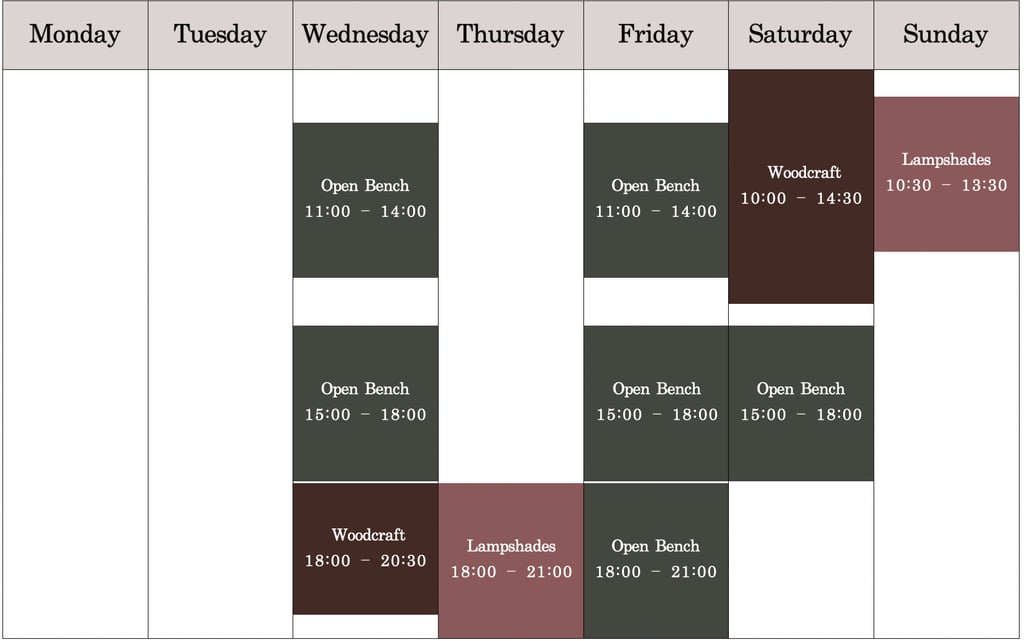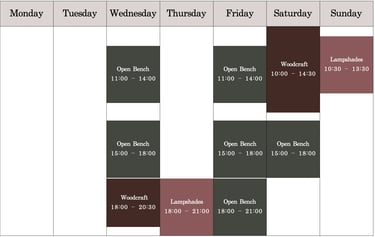 Join our workshops, learn traditional techniques, or come for an open bench session for your own creative projects