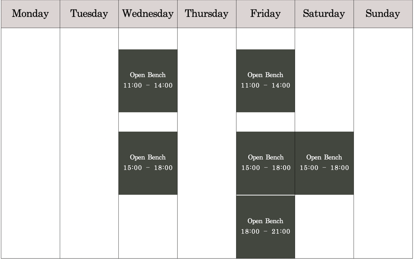 Open Bench Sessions Schedule