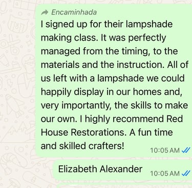 We restore old furniture, teach lampshade making, and share our creative space with others who appreciate handmade work and timeless design.