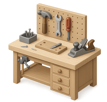 During the WoodCraft Course, you’ll go step by step through the full process of building your own piece of furniture — from shaping the legs to finishing the surface with natural oils. Each stage introduces new tools and techniques that deepen your understanding of how wood works.