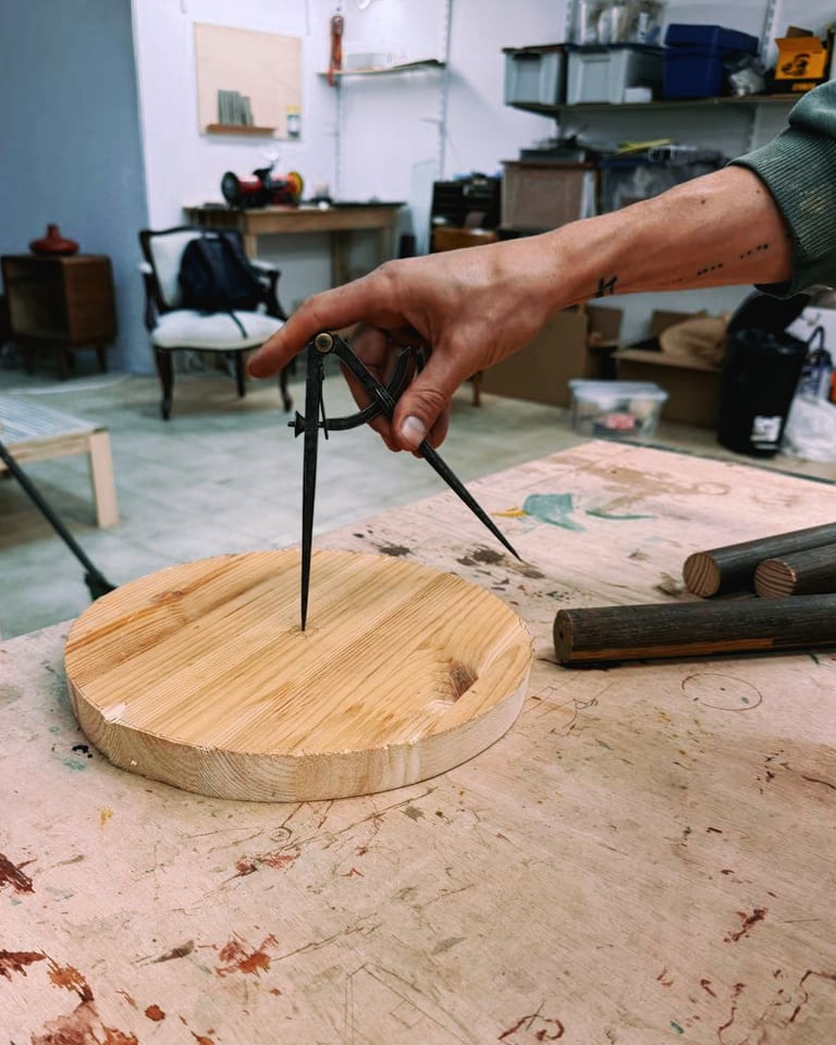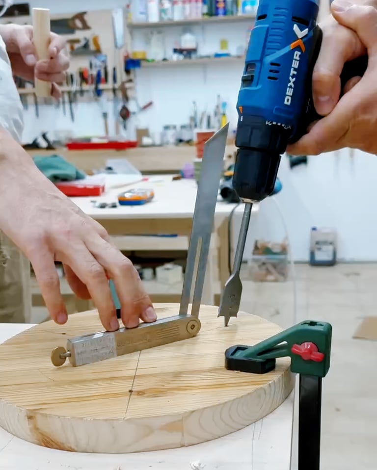 Learn how to mark the leg positions and angles with precision. You’ll use traditional measuring tools and templates to ensure perfect alignment before drilling the leg holes.